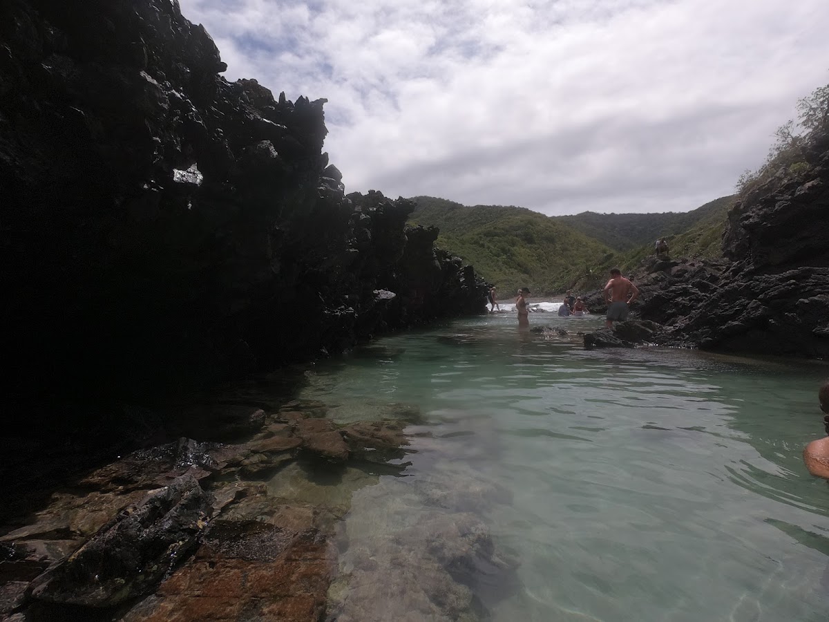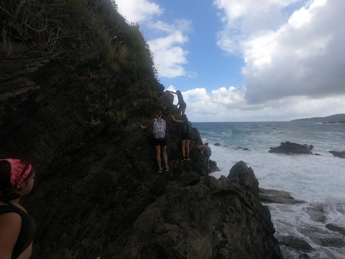 On Saturday morning, we hiked the Annaly/Carambola Tide Pools trail. The hike was pretty easy with only a few steep sections, but the rainforest was starting to take over. There were sections we would have to pass through bushes that made it difficult to see the trail and climb over trees that had fallen on the path. The view at the end was beyond worth it; waves crashed against dark, jagged rocks along the cliffside with a rock-filled beach looking out to the open ocean. To get to the tide pools, you have to climb along the side of a rocky cliff to reach the area waves had carved out tide pools over thousands of years. It was a bit terrifying to cling onto rock while waves hit and timing the next step just right to avoid getting your feet knocked out from under you. After passing a corner, the tide pools are a sheltered section of calm water and incredible views. We spent a while exploring the different tide pools and jumping off the edge into the pool below. It was an amazing experience and well worth the hike and climb along the rocks.