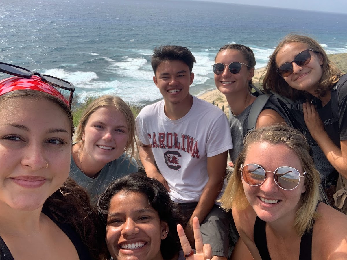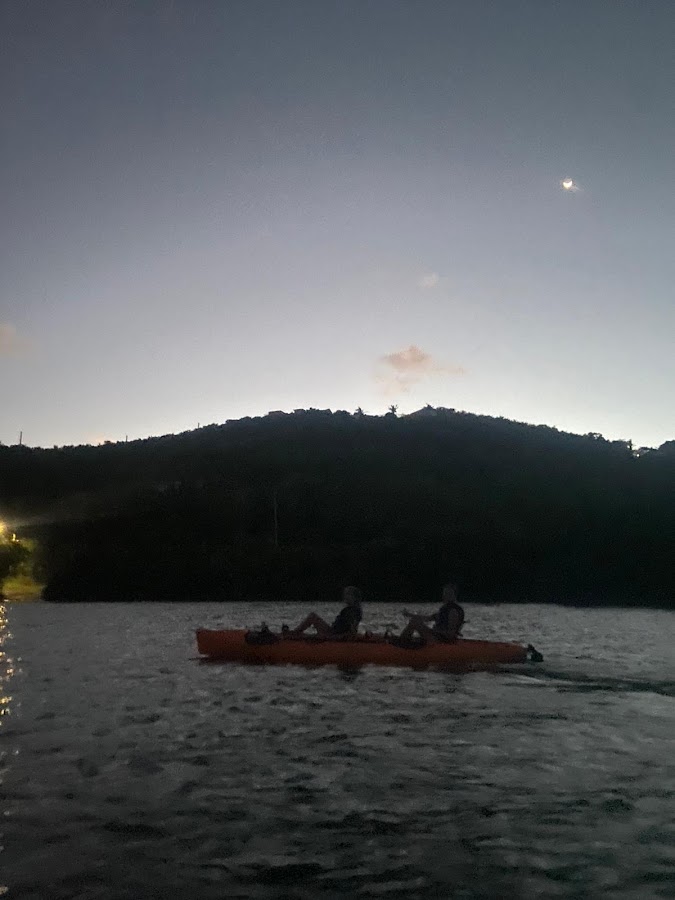 As the sun was setting, we headed towards our bioluminescent kayak tour at Salt River Bay. The guides were informative about boats in the harbor, the history of the bay, and the organisms that cause the bioluminescence. I shared a kayak with Ian, another NSE student from UofSC who is a marine science major. At UofSC, we worked in the same lab studying phytoplankton so we were both beyond excited to see the bioluminescent algae. As it got darker, the glowing in the water became brighter. There would be patches that your hand would be surrounded by glowing sparks, and others where it would be a few bright dots floating around. We kept falling behind the group watching the water and using hand nets to see the glow even more, but I couldn’t stop watching. Kayaking through the water while it lights up around my hand is one of my favorite memories, and it has been the best part about my exchange so far.