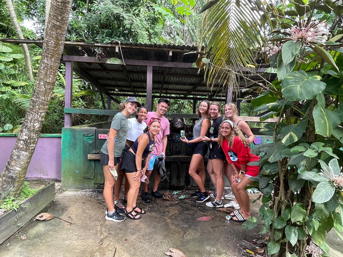 After hiking back up, we ate lunch at a nearby hotel/restaurant and waiting for a UVI student, Chloe, who went home to St. Croix for spring break to pick us up and show us other parts of the island. She took us to the Mt. Pellier Domino Club, a bar in the middle of the rainforest with pigs that drink beer. We bought a pack of non-alcoholic beer, and went to their stables where giant pigs were waiting for a can. We would each give a pig a beer and they would break the can with their teeth to drink the beer. It was one of the weirdest things I have done, but it was a fun experience. The club has had alcohol-drinking pigs for at least 15 years and from the pigs reactions they clearly loved the taste. Once all the beer was gone, we drove through the rainforest and headed towards Frederiksted for more ice cream. By now it was the late afternoon, and we needed to get back to the hotel for a kayak tour so Chloe drove us back.