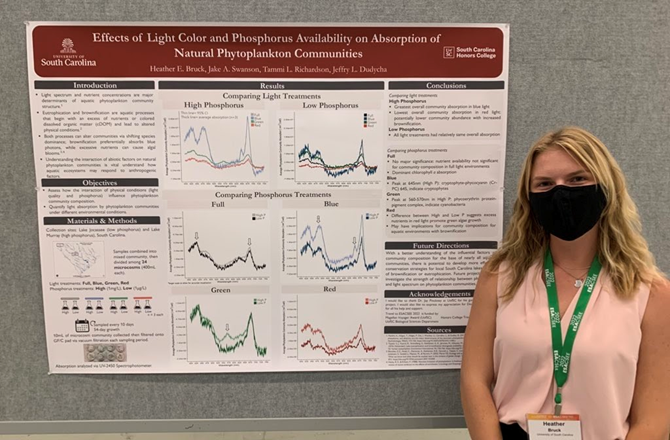 Hi! My name is Heather Bruck and I am a senior at the University of South Carolina Honors College. I am a Biology major with a focus in Marine Science. I am graduating in May 2023 and pursuing Graduation with Leadership Distinction in the Pathway of Research. I am pursuing this pathway as a result of the experiences I have gained through my leadership roles within independent and collaborative research projects as well as in the student-led organization Students Engaged in Aquatic Sciences.
